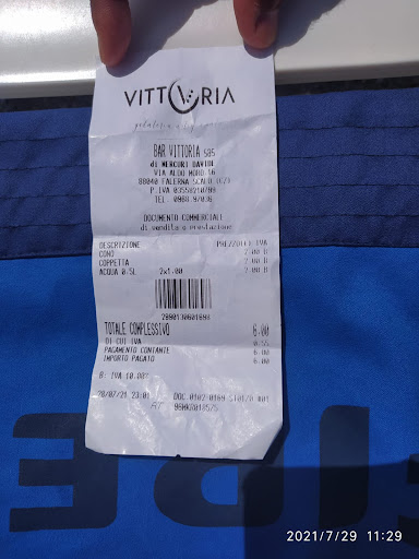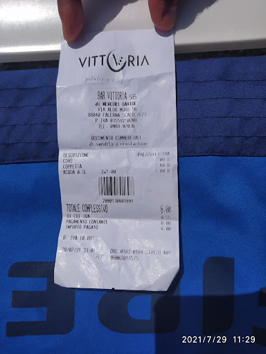 Read moreNon fequento molto Falerna Marina, talbolta passando mi fermo per un breack, così da quasi 50 anni, quando c'era l'analogo Bar Vittoria a Nicastro, famoso per la pasticceria e i gelati. In 50 anni é sempre stato gradevole fermarsi per una pausa e i 50 anni ne sono passati di cameriere e cassieri. Le 5 stelle e i pochi minuti che impegno per questa recensione danno onore ad una istituzione di Falerna Marina. Infatti ho letto le recensioni negative che mi hanno preceduto ed é giusto mostrare il vero volto di questo locale. Le argomentazioni, lo stile nell'esposizione e il numero di recensioni rappresenta l'utente che pubblica una recensione; ammesso che io abbia un problema, risolvo in modo civile il problema: subito, esponendo le lamentele, spiegando che la critica è il disappunto serve a migliorare e accrescere la qualità. Un Bar che dopo 50 anni é lì, sempre pieno di clienti, con moltissime recensioni positive un motivo ci sarà!!
