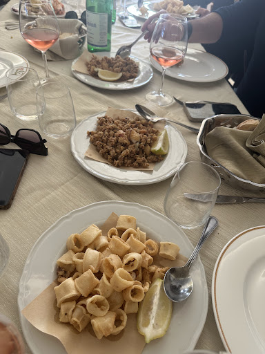Read moreIl ristorante "Da Palmerino " è sicuramente l'ideale per chi ama mangiare del buon pesce in una cornice davvero bella a ridosso della spiaggia e quasi sul mare in un'atmosfera rilassante e piacevole. ottimo l'antipasto composto da una serie di pietanze calde e fredde cucinate con semplicità (tra le altre tonno scottato con cipolla rossa di Tropea, fritturina di paranza locale, zuppa di cozze cannellini e zucca,guazzetto di seppia pisellini e patate,parmigiana di melanzane e tonno) ottima l'impepata di cozze mentre mi ha convinta meno la frittura di calamari. sicuramente ottimo il crudo di pesce e le grigliate. il proprietario attento cura egli stesso le ordinazioni. il personale gradevole,gentile e preparato. ho trovato un po altini i prezzi... tranne l'antipasto che per la varietà delle portate ho trovato corretto nel prezzo , stesso discorso non può essere fatto per i secondi : 10 euro una impepata di cozze e 14.00 una frittura di soli calamari mi sono sembrati eccessivi. la qualità del pesce resta comunque più che buona così come l'intero pasto nel suo complesso che trascorre in un piacevole relax scandito dal rumore del mare e dalla frescura della brezza...