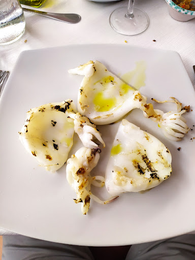 Considerata la posizione, mi sarei aspettato di gustare, principalmente, dei piatti a base di pesce tuttavia, presenti nel menù in quantità minimale e di bassa qualità. Eravamo in dodici, abbiamo preso 8 antipasti di mare e 3 della casa, due non hanno preso antipasto. Gli antipasti serviti nei vassoi e non impiattati, probabilmente perché insufficienti per tutti. Abbiamo preso inoltre, tre primi di pesce (unica scelta possibile) scarsi in quantità e scadenti in qualità, e due primi della casa, quest'ultimi accettabili. Infine abbiamo preso la frittura di pesce mista, questa volta, a differenza dell'antipasto, impiattato, di qualità accettabile, scarsissima in quantità e varietà (10 anelli di calamaro e 3 alici, praticamente un assaggino, considerato il prezzo pagato per la frittura "12 €"). Amaro e lemoncello coi quali abbiamo bagnato solo le labbra, infatti si trattava di sciroppo a base di acqua e zucchero con un lieve aroma di erbe. Tornerei solo per recensire i piatti a base di carne che non ho personalmente assaggiato e pera terrazza...