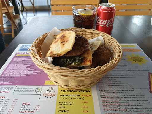 Ordinato sempre da asporto, piadine e patatine squisite e sempre in orario, pessima idea invece aver scelto di cenare sul posto in una domenica sera d'ottobre tutt'altro che affollata rispetto a qualsiasi giorno feriale o festivo durante la stagione estiva. Ci hanno fatto accomodare, eravamo in due, e abbiamo ordinato subito il bere e una porzione di patatine in attesa di scegliere la piadina. Abbiamo atteso 40 minuti per l'arrivo delle patatine mentre ad un tavolo di 7 persone arrivato 30 minuti dopo di noi (tavolo che hanno dovuto oltretutto apparecchiare al momento) è arrivato tutto subito e sono stati trattati con una gentilezza estrema. Tentavamo di chiedere notizie del nostro ordine ad una delle cameriere che tra le due era probabilmente la responsabile di sala e ci ha completamente ignorato tutte le volte senza nemmeno girarsi. Arrivato il momento delle piadine i due cestini nei quali vengono servite ci sono stati praticamente "lanciati" sul tavolo, senza un "scusate per l'attesa" o un "buon appetito" (ok che secondo il galateo non è di buon gusto ma penso non lo sia nemmeno servire in questo modo). Al momento del conto ho chiesto delucidazioni in quanto vi era un cartello con scritto che durante i weekend non si accettano buoni pasto (mai successo in estate, sempre ordinato nei weekend e pagato con quelli), mi è stato risposto che non era per me un giorno lavorativo (eppure se vado a fare spesa di domenica me li fanno utilizzare, chissà perchè!) e che nei weekend c'è troppo casino per poter star dietro alla procedura (che è la stessa di un pagamento bancomat in quanto si trattano di buoni digitali). Potrei quasi accettarlo in estate data la zona, in inverno mi auguro che abbiano lo stesso pienone ma non era la sera in cui siamo capitati noi. Magari questa procedura è a discrezione del locale, provvederò ad informarmi. Per il cibo nulla da dire, patatine calde e croccanti (dopo 40 minuti di attesa per fortuna direi) e piade buone e...
