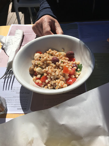 In occasione di un frugale spuntino a pranzo ci siamo fermati in questa frequentata piadineria ed abbiamo ordinato, dopo aver atteso un bel po’ prima che ci pulissero e liberassero il tavolo nel dehor, un’insalata di farro (€ 3,80: porzione piccola) composta da farro, mozzarelline, pomodorini, olive e basilico…forse un po’ banale negli ingredienti, ma utile allo scopo (un piatto leggero e fresco per sfamarsi un pò) ed una piada sfiziosa farcita con lonza, pecorino di fossa e lattuga….una buona idea di abbinamento, ma servita fredda e condimento poco generoso (e non sono un mangione…).