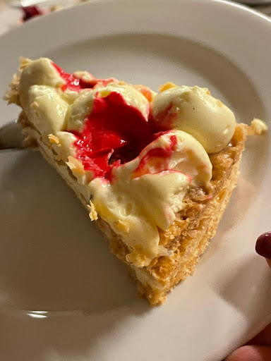 Purtroppo, devo ammettere che la torta conclusa era più una millefoglie/diplomatica a base di sfoglia e questo ha deluso le nostre aspettative. Tanto è vero che, dispiace dirlo, alcune fette sono rimaste nel piatto.