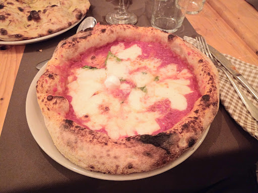 Read more2 spicchi Gambero Rosso per questa pizzeria del fanese, con tavoli anche all'esterno per quando il tempo lo consente (ed il traffico non è troppo, visto la vicinanza alla strada). Arredamento carino in stile simil partenopeo, come le tipologie di pizze proposte che variano per stesura a "ruota di carro" o con poco cornicione. Siamo stati accolti con un prosecco offerto, per il quale però non ci è stata fornita un'alternativa analcolica (o da stuzzicare...). Buoni gli ingredienti e l'impasto, con un profumo che ricorda la crosta del pane; bene anche la cottura in forno a legna. Poca scelta per i condimenti accessori (olio, maionese, ecc.). Essendo soli in sala, nostro malgrado ci siamo ritrovati ad ascoltare i discorsi del personale e dei proprietari sulla gestione dei fornitori e degli acquisti; niente di grave ma certamente fuori luogo durante l'orario di servizio. Disponibili per la vendita alcuni prodotti ed ingredienti tipici; menù dispersivo e più simile ad un catalogo che a una carta semplice da consultare per il cliente. Esperienza gastronomica comunque nel complesso positiva, torneremo certamente se dovessimo trovarci in zona. Consiglio la prenotazione on-line visto la difficoltà nel trovare posto nell'immediato tramite telefonata. PS: perché far pagare prezzi diversi per 2 lavorazioni di pizza...