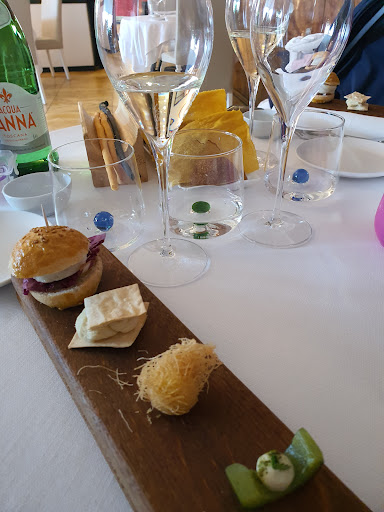 Simple and elegant restaurant at 2 steps away from the Lido beach of Fano. The outside facade of the hotel doesn’t represent properly the lovely restaurant inside the building. Very attentive service and incredibly fast. Everything starts with a great selection of amuse buche that includes small bites of different fish including amberjack, grey gurnard and mackerel, accompanied by a glass of bubbles. Then the bread comes, variety of homemade whole wheat flour delicacy and breadsticks. You gotta dip a bite into the Evoo. We tried the crudo, steam crustaceans, brodetto (it was the first day of brodetto feast) and turbot with artichoke. The last one was slightly disappointing as it came not even 100 gr of fish with a poor quarter of artichoke. A portion that would have been acceptable for a set menu not for a la carte. We finished with la “moretta fanese” and a generous “piccola pasticceria” by the chef. Very good value for money and highly recommended if you are in the area.
