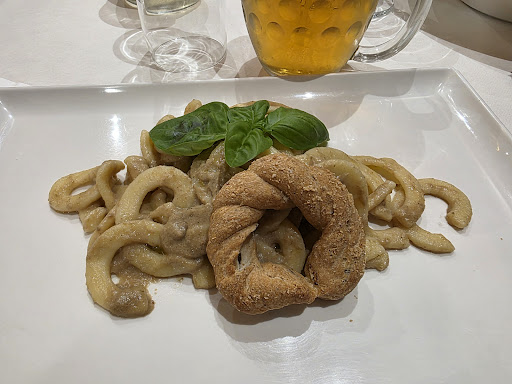 Come antipasto abbiamo preso delle zeppoline alle alghe da condividere, e io ho preso in più un crocchè di patate. Come primo invece ho mangiato gli scialatelli alla crema di funghi, mentre gli altri sono andati di spaghetti alle vongole e gnocchi con gamberi e zucchine. È stato tutto buono, e si sente che la cucina è casereccia e che il cibo è fatto in casa.