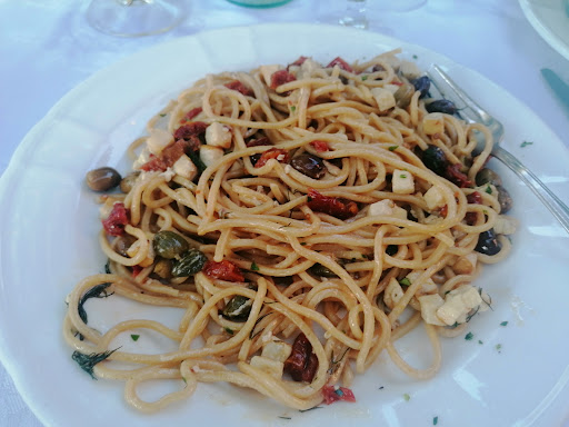 The restaurant is a comfortable retreat in Fano, encased in Palm trees and beautifully arranged seating areas- inside, or in the winter garden, or the garden, or a pavilion. The service is incredible, our waitress and waiters were professional and friendly. Then, we, a table of five with a dog, ordered our food, waited a short time and had the best carbonara with fish of all our lives. Good pizza, good coffee, good service. 10/10 would recommend any time. If you are anywhere in the area, it is a must to visit this...