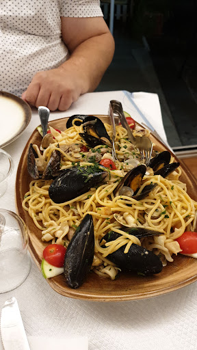 Read moreDa anni quando siamo in zona ci fermiamo in questa storica trattoria fanese, una sorta di istituzione tra i locali ma molto frequentata anche dai turisti. Il menù proposto ricalca in gran parte i piatti semplici (e gustosi) della cucina tradizionale marinara italiana e la materia prima (pesce) è, come detto, freschissima! Poi i prezzi: per un menù completo di pesce si mangia tanto e si spendono circa € 25-30 a testa!! Cosa da non poco...visti anche i tempi... Nell'ultima cena (eravamo in 3) abbiamo ordinato: 1 antipasto (€ 5,50): cozze e vongole, buone e fresche come al solito; 1 primo (€ 7,50): gli ottimi spaghetti bianchi ai frutti di mare....un piatto che ordino spesso con piacere e che si può condividere in due (se non si è dei mangioni); 3 secondi (€ 28): due porzioni di delicati e saporiti spiedini di gamberi e calamari ed una delicata e gradevole sogliola allo spiedo; 3 contorni (€ 7): due fresche insalate miste (€ 4) e patatine fritte (€ 3); 3 dessert (€ 11): due porzioni di pasticceria secca (non indimenticabile) ed un sorbetto al caffè. A chiudere 2 bottiglie d'acqua (€ 4), 1/2 litro di vino bianco frizzantino della casa (migliorabile...: € 3,20) e 3 coperti (€ 4,50)... Totale di € 74 in 3 (1 antipasto, 1 primo, 3 secondi, 3 contorni, 3 dessert...più che onesto ed uscendo decisamente sazi!! Raramente si può gustare pesce, magari semplice e "povero", ma fresco a simili prezzi... Per chi non conoscesse il locale segnalo che...La cucina è senza fronzoli, ogni tanto viene aggiunto qualche nuovo piatto ed il servizio è essenziale: oltre cento coperti tra interno e grande dehor, camerieri veloci e simpatici, pesce freschissimo dell'Adriatico (siamo nella zona dei cantieri navali della città).