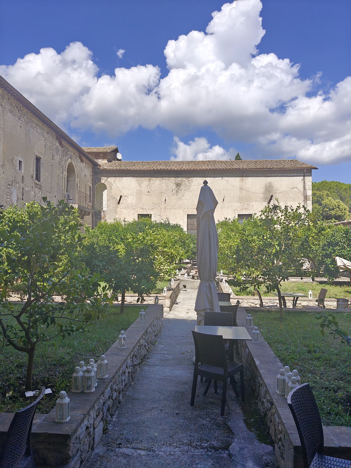 Carina la location in un agrumeto che da un tocco di tranquillità in un borgo dove la pace regna già sovrana: lo stesso agrumeto comunque avrebbe bisogno di un po' di manutenzione ma probabilmente non dipende dai gestori che comunque sono cordiali e molto gentili (hanno portato anche una ciotola d'acqua per il mio cane) ...e non è detto che sia una peculiarità di tutti i ristoratori.