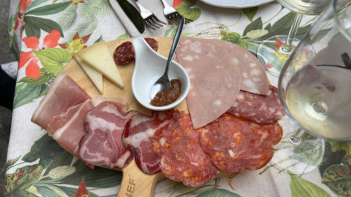 Per il costo mi sarei aspettato un tagliere di salumi e formaggi(o) al di sopra della media, più corposo o quanto meno con prodotti locali che sicuramente non mancano: a parte la mortadella (?) forse la coppa, il prosciutto e la schiacciata e il pecorino erano della zona ma il sapore un po' dozzinale.