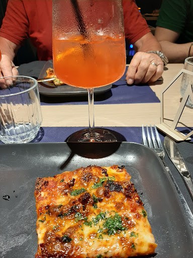 Ambiente curato nei minimi dettagli, personale cordiale e molto preparato, pizze con una ampia scelta di gusti e molto particolari ma vi faranno venire voglia di mangiarle di nuovo. Costi giusti per la qualità del cibo, e la qualità di certo non manca. Consiglio assolutamente. Oggi ci sono stato di nuovo, ho provato la formula apericena, prezzo super conveniente, un drink e pizza no stop a veramente poco, bella l'idea, pizza sempre buonissima, ma ho abbassato il servizio di una stella perché, primo la lentezza nel far uscire le pizze e seconda, la più importante, che persone che conoscono il proprietario, fanno come vogliono, mi spiego... la pizza no sto è a buffet, cioè il pizzaiolo le sforna, le taglia e le mette su dei piatti tondi ed ognuno si può servire, ci sono dei pitti che ognuno può prendere e pinze sa cucina per mettersi la pizza nel piatto, beh chi conosce oppure è amico col proprietario va e si serve con le mani, prende la pizza dal piatto dove la prendono tutti gli altri, è molto poco igienico e la cosa assurda è che nessuno ha detto nulla e Personalmente è una coda che non mi piace che qualcuno mette le mani sulla pizza che dovrò mangiare anche io visto che ci sono i mezzi congrui...