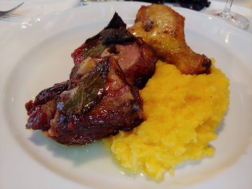 Read moreRistorante classificato come locale storico veneto, in centro a Col San Martino. Il locale è arredato come una vecchia locanda veneta: può dare la sensazione di vecchio, però il locale è tenuto bene e pulito. Bella anche la veranda estiva coperta di edera. Il servizio è cortese e veloce, non si attende troppo per l'arrivo degli antipasti. Il menù non prevede molte scelte, ad ogni modo il piatto di salame fresco all'aceto e gli affettati sorpressa e sottaceti erano buoni. Devo ammettere che, dopo aver provato diversi piatti che prevedono lo spiedo, questo di Condo è veramente buono, gustoso e soprattutto morbido. Complimenti! Il prezzo per un antipasto, secondo e dolce è di circa 40 euro a persona, ad aprile 2024. Il parcheggio è disponibile gratuitamente nelle vicinanze, anche...