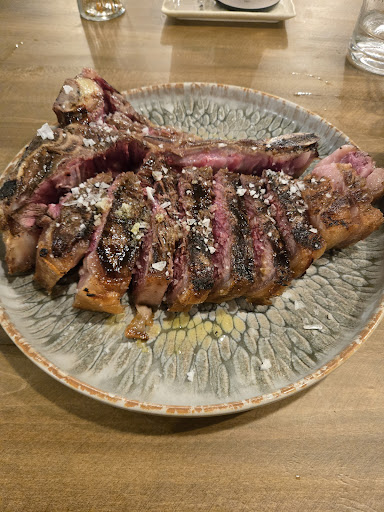The steak I ordered was cooked perfectly, seared just right, fat was delicious, and cut into slices for me. I really enjoyed they let it rest, and it wasn't a puddle on my plate. Don't be afraid to pick up the bone and eat right off it. Pan-fried potatoes were crisp yet fluffy as I bit through. The chikery and fava beans were terrific. I even tried some on my steak, and it was a great combination.