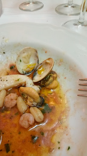 In ogni caso ordiniamo primi e fritture di pesce per tutti. I primi di qualità sufficiente, nulla di trascendentale. Ma quello che risalta subito è la quantità. Letteralmente 50g di pasta, qualche pezzo di pesce, una decina di gusci di molluschi per lo più vuoti. Non chiedo un’abbuffata, ma nemmeno quantità così misere. Si va avanti con le fritture, arrivate tra l’altro con un certo ritardo: nel piatto 7/8 anelli di calamaro, 2 gamberi ed un pesce di paranza. Qualità ancora una volta sufficiente, quantità da menu degustazione o forse anche meno. Una gran bella truffa, considerando che fino a qualche anno fa a prezzi inferiori le quantità erano normali, accettabili. Quindi una scelta da parte della direzione probabilmente quella di diminuire le quantità a discapito dei clienti. Faccio notare questa cosa al cameriere, che con fermezza esclude che rispetto al passato le porzioni siano scarne. Essendo ormai tardi per ordinare altro ed aspettare molto tempo, alcuni amici decidono di mangiare qualche pezzo di pane pur di ovviare alla misera e vergognosa quantità di cibo arrivata. Per concludere il cameriere ci porta il conto senza neanche attendere che noi lo chiedessimo. Andiamo a pagare nell’ufficio del titolare e facciamo notare tutto quello che è accaduto. Ed il proprietario, con fare dozzinale ci dice che se avessimo fatto notare questa cosa “vi portavamo un piatto in più”.