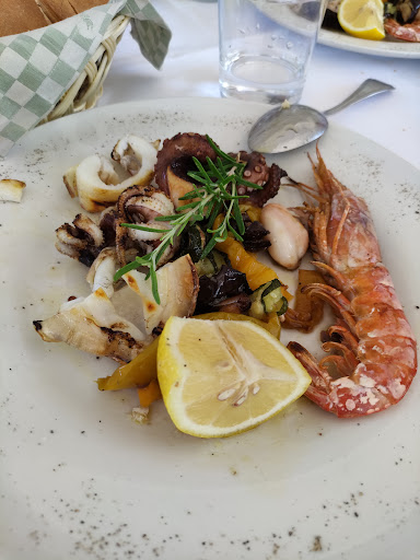Sono stato per la prima volta in questo locale che si raggiunge in modo semplice sia da Fasano che dalla litoranea da Torre Canne. Ci sono andato assieme a mia moglie ed i nostri due figli. Il locale si presenta bene, pulito ed in un posto che permette di "affacciarsi" sul mare. L'arredo è comunque datato anni 80/primi 90. I camerieri vestono ognuno la sua divisa, chi col gilet verde sopra camicia bianca, chi con una polo grigia! Diciamo sotto le aspettative. Arriviamo alle 21.10. la sala è semi-vuota, con pochi commensali. Pur avendo prenotato ci dicono "accomodatevi" senza indicarci un tavolo a noi riservato, così io e mia moglie cominciamo a vagare per la sala ed alla fine ci sediamo su un tavolo vista mare. Aspettiamo pazientemente seduti circa 20 minuti, prima che il cameriere venga da noi per chiederci solo cosa beviamo. I primi antipasti arrivano per le 10.15.... esattamente un'ora dopo il nostro arrivo. Il pesce è buono, nulla da dire, ma i fagioli col pesce non si sposano proprio! Piatto questo tra gli Antipasti che secondo noi fa scadere in negativo. Comunque ottimo il polpo così come ottimi i moscardini e le cozze gratinate. Arrivano i primi. Io e mia moglie cavatelli ai frutti di mare, mentre i bambini risotto ai frutti di mare. I cavatelli sono buoni, compreso il condimento, voto 8. Per curiosità abbiamo assaggiato anche noi il risotto dei bimbi: bocciato, sembra bollito e poi ha i medesimi ingredienti del risotto; sembra come se totano, cozze, gamberi, vongole siano di base comune per i due piatti senza personalizzazione particolare nell'esaltazione di gusti differenti tra i due piatti. Per onore di cronaca nei mie cavatelli c'era una vongola con del riso dentro.... come avrà fatto ad arrivare il riso nei cavatelli? Emblema che ho rivolto al cameriere il quale con evidente imbarazzo non ha potuto fornirmi una spiegazione "diciamo" valida. Arrivano i secondi: io pesce spada gratinato, mia moglie spigola alla brace i bimbi fritto misto. Qui c'è una ripresa in positivo della cena anche se le porzioni dei bimbi di fritto sono misere. L'unica piccola pecca è nella gratinatura del mio pesce spada, un po' sottotono. Ottima la spigola. Voto secondi 9. Chiudiamo con il dessert dove i maschi scelgono il sorbetto al limone mentre le donne la sfoglia con crema chantilly. Dessert voto 9. Alla fine della cena aspettiamo ancora una decina di minuti a chiacchierare e poi ci alziamo nell'indifferenza totale dei gestori/camerieri.