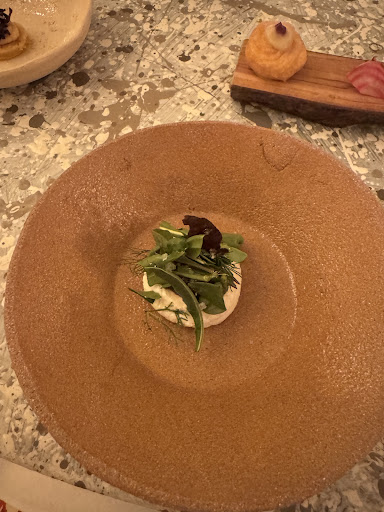 Read moreThis is a place of absolute excellence, where the chef’s gastronomic research meets impeccable and friendly service, all wrapped in a warm and refined atmosphere. At the moment, the menu offers two main options: a 9 course tasting menu or a selection of “cards” (each with 3 seasonal dishes) that can be mixed and matched. I went for the second option and built my own journey through chickpeas, zucchini, chicory, and melon. Each card has a general orientation (appetizer, main course, dessert) which gives a natural rhythm to the meal while leaving space for creativity and personalization. The whole menu is vegetarian which I truly appreciate because it makes this experience in Puglia even more unique and interesting. I also chose the mocktail pairing, which was a great decision. The pairings were unique and well-executed, layered, aromatic or acid, and in tune with the flavors of the food.