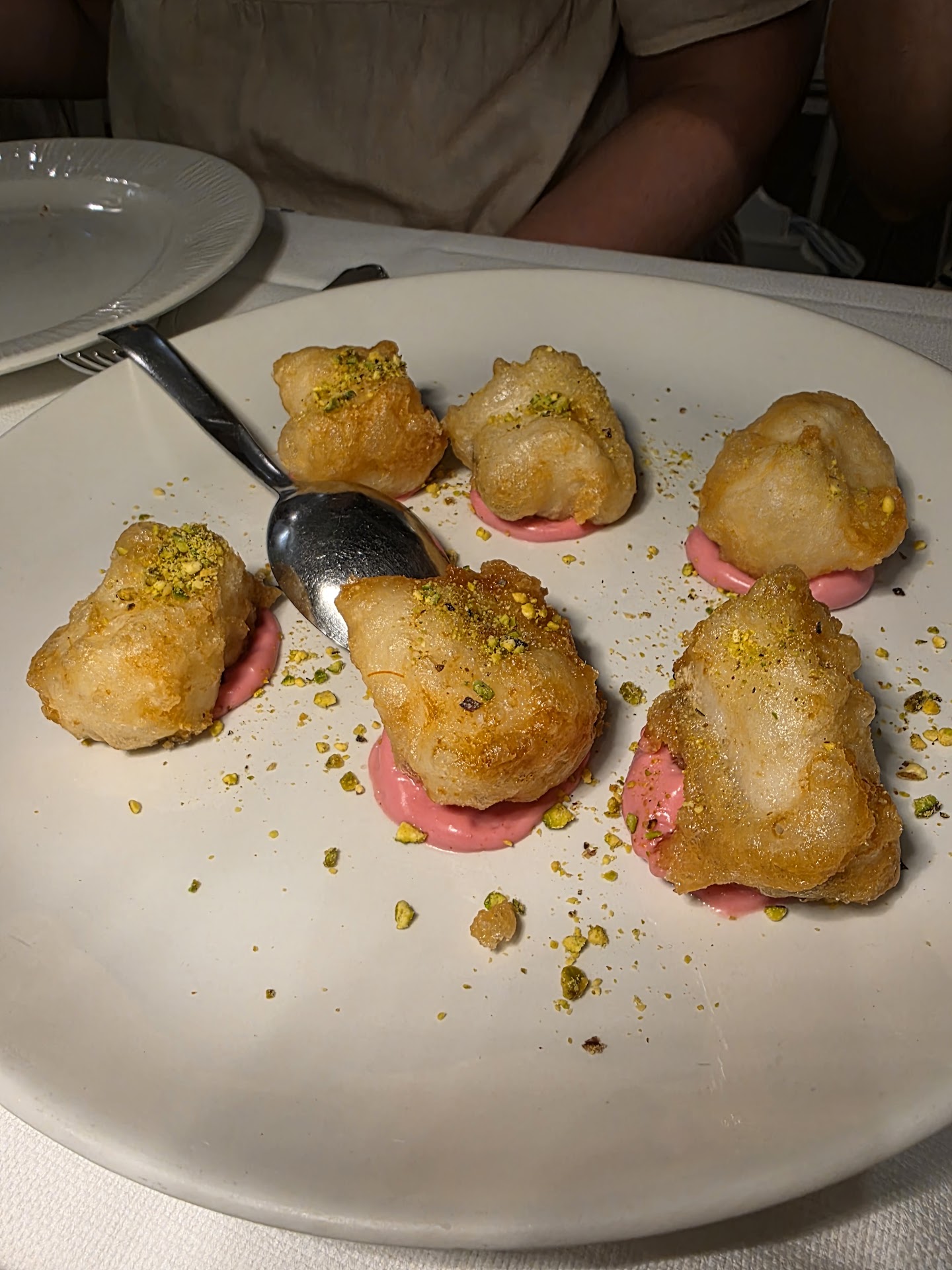 One thing that we'd been craving whilst in Italy was fish. The Adriatic Sea was constantly within our eyeline yet we were surprised that, despite being only a few kilometres from the coast, restaurants serving fish in Conversano were a little thin on the ground. When we moved hotels on my birthday and were even closer to the coast, we knew we had to do something about it and after a quick bit of Trip Advisor searching, I chose the Osteria del Porto in Savelletri for my birthday meal. We managed to book a table and a taxi to take us down and were greeted by a little nautical-themed, harbourside restaurant teeming with local customers and really friendly staff. We ordered a bottle of Verdeca (a sparkling Apulian white that we'd learnt about during a casual bit of wine tasting) and decided to forgo the four course tradition with some cleverly chosen dishes instead.