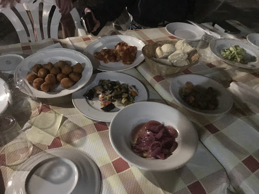 Read moreMai più, tanti km per niente. Arriviamo in 4 è vero in seconda serata, alle 22,45 ma di domenica ci sta. Ci fanno accomodare con con molto comodo, nonostante siano mezzi abusivi nella stradina. Ci è stato consigliato per gli antipasti abbondanti e le pizze buone, tutto a 10€.ma ci arrivano solo un piatto di polpettine fritte, un piatto di patatine fritte, un misero pezzo di parmigiana a testa e due peperoni conditi con pomodori. La spiegazione del proprietario: abbiamo finito tutto. Allora 1) non mi fai nemmeno sedere 2) al tavolo di 8persone venute dopo di noi hai servito molto di più. La grande professionalità del proprietario si è manifestata nel dare la colpa alla cameriera, nuova, che non ci ha detto nulla... Cosa c entra quella brava ragazza che stava correndo come una trottola avanti e indietro. Poi le pizze...alla mia richiesta di margherita con un po' di verdure grigliate sopra lui ha strabuzzato gli occhi manco gli avessi ordinato linguine all astice....ho chiesto una semplice margherita pur di riempire il mio stomaco affamato. Per non parlare di dolci e amaro:o quello o niente, pare avessero finito pure tutta la scorta di bottiglie di amari... Di certo non ci torno, chi parla bene è solo perché spende poco e vuole mangiare come se nn lo fa da tanto tempo...così come lo consiglia e ci torna...