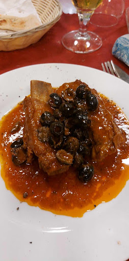 Le coste di maiale in umido con olive erano prelibate.