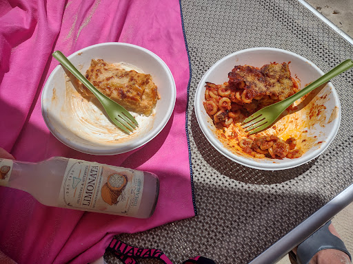 Honestly, at first i thought this is a tourist trap, expected small portions, low quality food and high prices, i mean, it's a beach buffet, right? god i was wrong! This was the best food experience in sicily so far, very good prices for reasonable portions of pasta, which were delicious! (We already ate half before the photos). 20e for food for two and small lemonade. Great experience paired with rented...