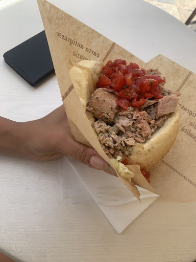 We went for a street food lunch, we took a pistacchioso and a piccantino tuna kebab (the kebab in Sicily is the bred filled with meat, in this case tuna). The staff was friendly and approachable. The panini were more than delicious, high quality ingredients, right amount. This is the real comfort food, good for your body and your soul! Maybe the drinks are a bit overpriced, but I believe it’s the island regular situation. We went back the night after and took the tuna plates: they are all served with salad and bruschette and you get a bit bigger amount of food, for €9. We loved this place, if you are in Favignana, it’s the best place to eat (amazing food for the...