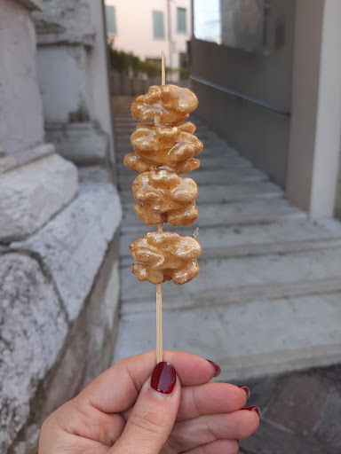 In una giornata fresca e dopo aver camminato molto per visitare la splendida città, ci siamo fermati, per una sosta rigenerante, in questa Gelateria Pasticceria. Ambiente caldo e accogliente. Abbiamo notato, in vetrina, degli spiedini di frutta caramellata. Abbiamo preso uno spiedino accompagnato da due bevande calde. Il servizio è stato molto cortese e professionale. Abbiamo anche preso una cioccolata con panna. Molto bello in cui ci è stata servita la cioccolata. Era contenuta in una bella tazza e, a parte, in una piccola ciotola, ci è stata servita la panna. Tutto con eleganza e gentilezza. Prima di uscire, per poi poterlo mangiare più tardi, abbiamo fatto incartare un altro spiedino. Un plauso al titolare, che è stato molto gentile, offrendoci lui lo spiedino. Non è facile trovare persone così speciali!! Mi ricorderò sempre il gesto che ha fatto con tanta spontaneità. Qualità/prezzo - ottimo Prezzi buoni e qualità...