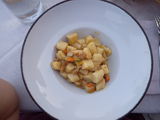 Read moreAbbiamo prenotato per cenare in due in questo locale e quando siamo arrivati ci siamo ritrovati in un posto molto caotico e pieno di gente (sabato sera, luglio). I camerieri erano così indaffarati da correre di continuo, risultare quasi scortesi. Abbiamo sentito poca attenzione verso il cliente. Siamo stati quasi trattati come oggetti. Son arrivati i secondi prima che avessero portato via i piatti o vuoti dei primi Il cibo era meno che mediocre: Gnocchi fatti in casa (non sembrava affatto) con capesante (quasi invisibili) e funghi (un piatto che sapeva di brodo di pesce Pasta (precotta male) al ragù di cervo Filetto di rombo (niente di che) Patate spadellate (buone ) Tagliata (decente) servita con verdure grigliate gelide e patate buone 2 dolci del giorno totalmente acidi Acqua e vino (buono) 89€ (il prezzo ci sta) Spero cambino presto i menù lerci ed usurati. Nessuna pietanza per celiaci. Bello solo per la vista che offre se si cena all esterno. Magari le pizze sono più buone e magari son più cortesi quando hanno meno clienti. Insomma, sconsiglio