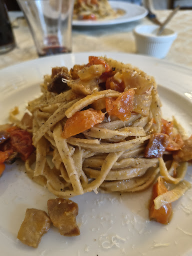 A lovely setting, next to the church across the road from the actual restaurant building - but the service was way too slow and some of the staff were quite curt with us. The food was average, no more nor less. The passatelli were really chewy (which might be a local way of making them, I personally prefer them to be a bit softer). The roast potatoes were really good. Bit of a maybe on whether I'd ever go...