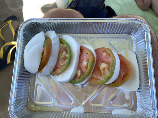 Sul giudizio pesa l’esperienza pessima avuta con il bar: 2 del pomeriggio, passata l’ora di punta, ampi tavolini vuoti fuori, deduco che è un ottimo momento per bypassare la ressa e chiedere una bella caprese. Attendo 10’, pago ben 7€ e presumo il titolare, un giovane sui 30, mi porta una vaschetta di alluminio piccolina, circa 20x15, coperta con della stagnola. Non vedo subito dentro. Chiedo solo se dentro ci fossero delle posate, mi dice di no si scusa e me le porta a parte. Arrivo all ombrellone e con meraviglia all’apertura della vaschetta vedo quanto mostrato nella prima foto. 5-6 fette di mozzarella, intervallate con del pomodoro peraltro verde e buttate lì, senza neanche condimento se non un filo leggero di olio. Come dire tieni e mangia. E allora non ci sto, torno dentro, chiedo del titolare, e gli dico Guardi questa l’ho pagata 7 euro. Gentilmente me ne fa aggiungere un altro po’? E lui senza batter ciglio ma con una coda di paglia lunghissima, senza neanche chiedere scusa o mostrare imbarazzo, mi risponde Sì. Torna di là con la mia caprese da 7€, attendo ulteriori 5’ (!) - con un cliente che ti fa fare questa figurina avresti dovuto scattare come un missile! - , e mi riporta la caprese come bella seconda foto. Sempre scondita, pomodori sempre acerbi, ma per lo meno mi sono reso giustizia e ho evitato che mi prendessero in giro. Ahi ahi, se questi esercenti pensano di recuperare i mancati incassi del periodo covid in questo...