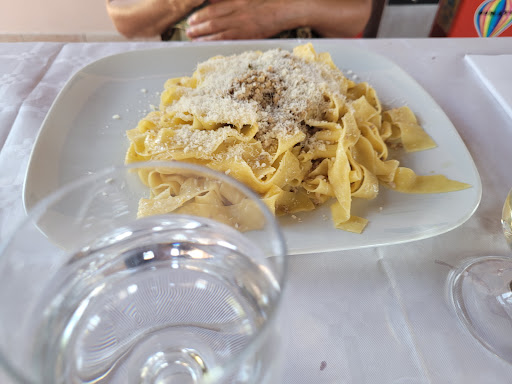 I primi. Le pappardelle al cinghiale sono il piatto che mi ha più deluso. Sono servite in bianco e la sensazione è quella di mangiare della pasta con della carne vicino. Eravamo al tavolo una dozzina di persone e tutti eravamo concordi che non si potesse trattare di cinghiale ma di carne macinata. Abbiamo chiesto al titolare ed effettivamente ci ha confermato che alla carne di cinghiale è stato aggiunta altra carne mista. Si sentiva eccome. L’altro primo erano le tagliatelle fritte, specialità tipica della zona. Il sugo di pomodoro che le accompagnava risultava “acidino” e la tagliatella fritta risultava davvero pesante, intrisa così tanto di olio che a tratti risultava quasi fastiosa.