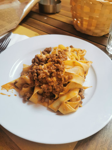Read moreProvato tempo fa Una visita alla meravigliosa Ferrara, dove si trova quella che il Guinness dei Primati certifica come essere la più antica osteria del mondo. Le prime notizie risalgono al 1435 dove l'osteria operava sotto il nome di Hostaria del Chiuchiolino (da Ciuc = ubriaco). Ha dato ristoro a personalità quali Benvenuto Cellini, Tiziano, Ariosto, Tasso. Insomma non solo l'ambiente trasuda storia, ma anche la posizione (di fianco alla cattedrale di Ferrara) e le bottiglie provenienti da mezzo mondo con due dita di polvere sopra. Ma veniamo a noi: l'oste, molto gentile e disponibile mi consiglia di iniziare a sorseggiare in attesa del pranzo un calice di Miniato di Francesconi Paolo, un interessante blend di Sangiovese di Romagna e Cabernet Sauvignon, che ho gustato con degli stuzzichini (ciccioli, formaggi). Come primo piatto ordino un "Pasticcio di maccheroni alla ferrarese", una particolare proposta dolce/salata dove il dolce della pastafrolla si sposa molto bene con il salato dei maccheroncini che costituiscono il "ripieno" di questo tortino. Un piatto comunque da perfezionare e da riequilibrare in quanto il dolce prevale un po' troppo. Accompagno il primo con un calice di Tajaven 2007 della Cà dei Quattro Archi, un Sangiovese Superiore Riserva di Romagna DOC. Di secondo ordino un piatto che si rivela un inno alla gioia: un misto di bolliti con purè e salsa verde. Nel piatto c'era un "Cappello del prete (guanciale di maiale), dello stinco, manzo e la tipica salamina da sugo". Il vino che mi è stato suggerito è un Bursòn riserva del 2005 fatto con uve Longanesi dall'azienda Agricola Randi: un vino veramente "unico", di certo non di facile bevibilità, ma di sicuro sorprendente a cominciare dal "naso" molto "selvatico". Il prezzo direi assolutamente onesto è...