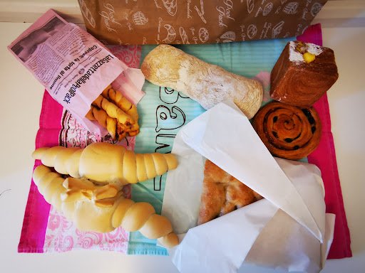 Piccolo forno Artigiano gestito da due giovani, fratello e sorella,coadiuvati dalla Madre,che provengono da una tradizione Familiare di Fornai. Negozio piccolo ma ben arredato. Offrono anche caffè espresso e gustosa Pasticceria Dolce e Salata per Colazioni. Ottimo Pane di varie forme , varietà di farine bianche, integrali , di Farro, Farro MONOCOCCO , Segale,con semi di sesamo oppure di semi vari Tutti Molto Buoni. Bella esposizione di biscotti, pasticcini e torte veramente gradevoli. Bella scelta di grissini alla cipolla, alle olive, al sesamo, all'olio e Deliziose Treccine alla pancetta come spezza fame o come compagne di televisione. Dulcis in fundo Gustosissimi tranci di Pizza e Pinza con varie SUCCULENTI farciture particolarmente la focaccia Ligure al formaggio Ottima e la focaccia croccante imbottita con affettati vari e, se si è fortunati, con la Porchetta 😋.È un forno Artigiano che ricorda i Vecchi forni preindustriali Che Consiglio...
