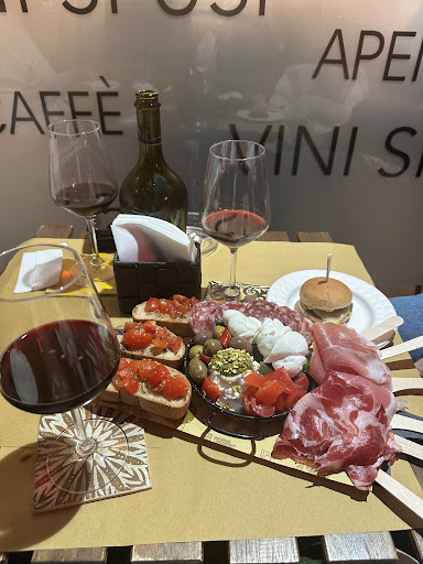 Il cibo e il vino sono più che buoni ma, mio malgrado, non posso mettere piu di 3 stelle, in quanto: i prezzi sono abbastanza alti, considerata anche l'ubicazione del locale fuori dal centro storico, in un contesto anonimo; all'esterno ci sono circa 10 posti, ma i tavoli sono distanti 10 cm l'uno dall'altro, in pratica mangi e bevi incollato agli altri clienti; il servizio, seppur gentile, è troppo frettoloso; col vino ti portano degli stuzzichini ma se ordini ad esempio un tagliere portano via gli stuzzichini mentre li stai ancora mangiando, per questioni di spazio...cioè, o ti organizzi con tavoli adeguati o, almeno, chiedi al cliente prima di portarli via. Hanno fatto così con tutti i clienti e a sentire i commenti nessuno ha gradito. In sostanza, ho mangiato e bevuto bene, ma con la voglia di andarmene il prima possibile.
