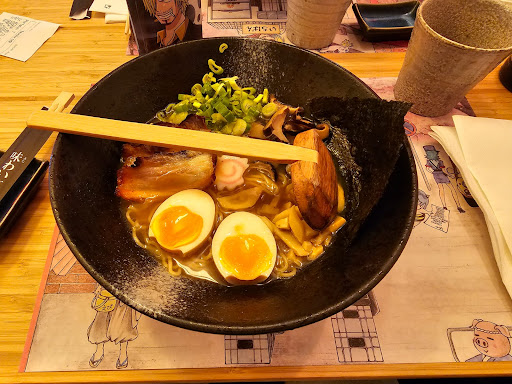 Read moreHo recentemente avuto il piacere di visitare un nuovo ristorante giapponese specializzato in Ramen, situato in Piazza Ariostea. Ho avuto l’occasione di cenarvi in diverse occasioni e desidero condividere la mia esperienza positiva. Il Ramen offerto in questo ristorante è davvero eccellente, con porzioni abbondanti e un sapore autentico che mi ha colpito positivamente. Inoltre, la varietà di piatti street food disponibili è una piacevole aggiunta, permettendo di sperimentare una vasta gamma di sapori in compagnia. Tuttavia, devo ammettere che la sezione dei dolci è stata l’unico aspetto che ha leggermente deluso. Nonostante la qualità sia indubbiamente buona, ho notato che le porzioni sono piuttosto ridotte e la varietà dei dessert limitata. L’ambiente del locale è affascinante, con un autentico stile giapponese che crea l’illusione di trovarsi in un tipico quartiere giapponese. Ho apprezzato particolarmente gli elementi estetici che contribuiscono a creare un’atmosfera accogliente, ideale per gli amanti di manga e anime. Il personale del ristorante è stato estremamente cortese e disponibile durante tutte le mie visite. È importante notare che è consigliabile effettuare una prenotazione in anticipo, specialmente nei fine settimana, dato che il locale tende ad essere molto frequentato. Tuttavia, vorrei sottolineare che, a mio avviso, l’ergonomia delle sedute potrebbe risultare un po’ scomoda per coloro che desiderano prolungare la loro permanenza...