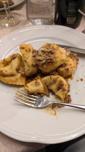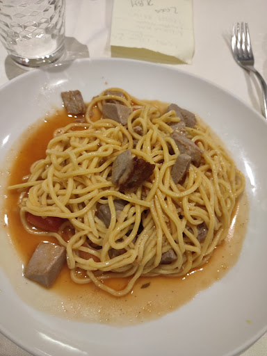 Per correttezza premetto che siamo capitati qui, senza prenotazione, a pranzo a fine Dicembre, quindi in altissima stagione. Voglio pensare che quindi tutto ciò che sto per raccontare sia dovuto a questo... Siamo in 5 adulti, ci dicono - in modo abbastanza "asciutto"- che comunque hanno posto ma solo in una saletta. Entriamo. La "saletta" era l'anticamera della cucina, senza finestre, dove erano già stati sistemati alla bell'meglio due tavoli da 4, uno con padre, madre, bambino e cane, l'altro con 5 ragazzi. Ci chiedono di accomodarci in un terzo tavolo da 4 (premetto che dei 3 uomini il più piccolo è alto 1.80...) attaccato alla parete di fianco alla porta della cucina e tra l'altro completamente a ridosso di uno degli altri tavoli. Rispondiamo che non possiamo starci in quel tavolino e ci dicono che aggiungeranno una prolunga. Arrivano con un altro mini tavolino, lo attaccano al nostro, con la conseguenza che l'angolo tocca l'altro tavolo e in 3 dobbiamo spostare avanti il tutto x poter entrare. Siamo strizzati come sardine in uno spazio inadeguato in 3 tavoli e 13 persone più un cane. Il nostro errore è stato (per estrema educazione) non alzarci e uscire, ma poiché siamo abituati a non comportarci come cafoni, non lo abbiamo fatto. Ordiniamo, mentre io praticamente sono seduta davanti al piatto del bambino del tavolo accanto. Ci arrivano 5 primi, tra cui i cappellacci alla zucca burro e salvia (buoni), quelli al ragù (senza infamia e senza lode) e spaghetti con tonno e friarelli senza l'ombra di friarelli e completamente annacquati (allego foto). Personale di sala, forse indispettito dalla nostra osservazione sullo spazio, poco accogliente. Mangiamo velocemente, nonostante tutto, senza ulteriori osservazioni, ma decidiamo di non prendere nè dolce nè caffè. Sull'ambiente non posso esprimere un giudizio, visto che abbiamo visto solo l'ingresso e la porta basculante della cucina. Mi spiace fare questa recensione, ma, con tutta la buona volontà di voler pensare che sia stata una gentilezza volerci offrire un tavolo, non è così che ci si comporta. Prezzo inadeguato per il servizio offerto (20-30€/cad per 1 primo e 1...