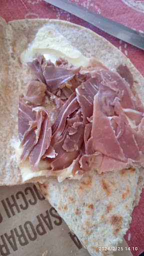 Read moreConosco il locale perché ci siamo andati altre volte anche in altre parti del Paese essendo una catena, oggi decidiamo di prendere l'asporto e pranzare a casa, scelta mai più sbagliata. Piadina al kamut con prosciutto crudo e fontina immangiabile, mai capitato una cosa del genere, piadina fatta con apparenti ritagli di scarto del prosciutto, ovviamente ho tolto tutto il prosciutto perché non commestibile e mangiata la piadina con solo la fontina. Se andate mangiate lì almeno avete la possibilità di riportarla indietro, perché se prendete l'asporto non...