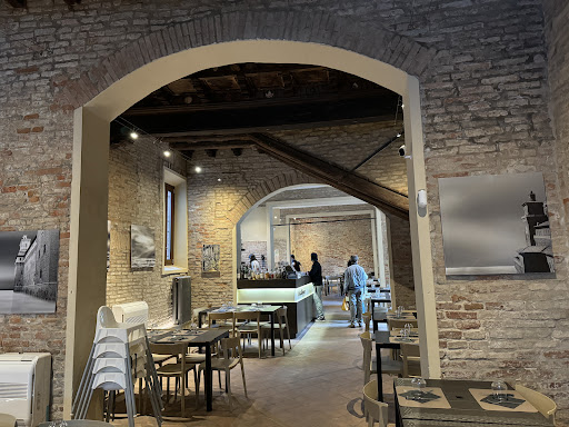 AMBIENTE 4,⁵⭐ ordinato e pulito. Bella location e bella posizione. L'interno molto gradevole dove il nuovo gioca con l'antico. Personalmente aumenterei il livello di luce sui tavoli magari con sapiente posizionamento di faretti che vadano a valorizzare anche il bel soffitto. Non esiste (credo) un punto gioco per bambini.