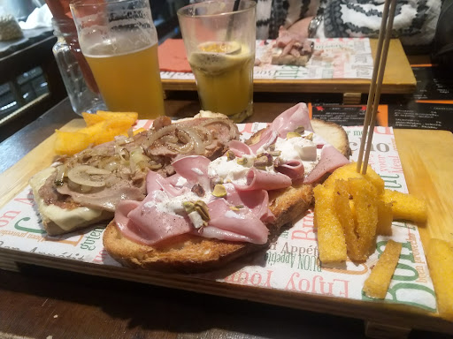 Read moreIl locale è situato nella zona centrale di Ferrara tra i vicoli caratteristici, primo giorno nella città, la mia scelta è stata in base alle recensioni positive...la scelta si è rivelata più che giusta!!! Personale simpatico e cordiale, si instaura da subito un rapporto che va oltre il cliente/personale del locale. La ragazza in cucina ( Agnese) è simpaticissima , così come la proprietaria e la figlia. Il mangiare? Prodotti molto buoni, ho avuto l'opportunità di assaggiare i famosi Crostoni, bruschette farcite con ogni ben di Dio e con mia sorpresa ci sono dei piatti anche Romani( lo è la proprietaria)che non ho provato ma ho visto preparare( l'area cucina è a vista)da occhio Romano ,direi preparati a dovere....alla fine...un gradito cicchetto...