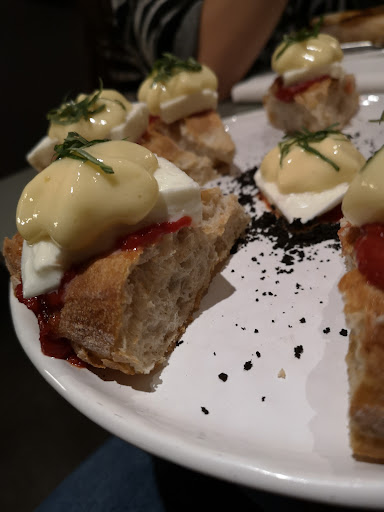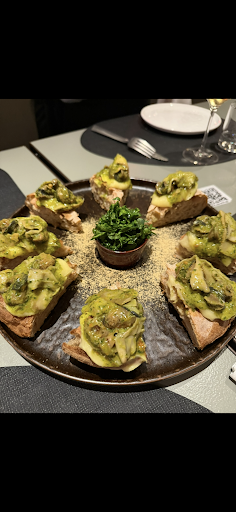 Read moreLocale che fonde pizzeria e cocktail bar alle porte del centro di Ferrara (comodi i vari parcheggi nelle vicinanze) . Il locale si presenta in una veste minimale ed elegante con luci soffuse ma bene studiate. Personale veramente molto gentile e pronto ad accompagnarti nella scelta del piatto e l'abbinamento con cocktail (ben realizzati dal barman) o altri tipi di bevanda. Inoltre per ogni commensale è stato chiesto se voleva un giro d'olio evo sulla pizza scelta. Ottimi oli extravergini che vengono associati ai differenti piatti. Arrivando al punto forte del locale cioè le pizze posso dire che il prodotto è ottimo a mia parere e si dividono in due tipologie : pizze all'impasto contemporaneo napoletano e le pizze gourmet con impasto molto più alveolato e alto ma altrettanto leggero e ben realizzato. Personalmente ho potuto provare una pizza gourmet intitolata Alchimia che presentava come topping del pomodoro o tiepido, bufala di Battipaglia all'uscita, foam al BloodyMe, julienne di basilico fresco, gusti classici ma ben dosati che non si coprivano. Il tocco della spuma era molto interessante e dava un tono acido/piccante che dava una spinta al piatto. Ho pututo assaggiare dagli altri commensali una gourmet Fassona con burrata affumicata, tartare di Fassona, cucunci, sale affumicato Halen Môn, sumac, di grande qualità e dal gusto delicatissimo e scioglievole. La classica Margherita era ottima e bilanciatissima. In conclusione il locale merita nella sua complessità. Conto un po' più elevato rispetto ad altri locali ma è giustificato per le materie usate, l'attenzione...