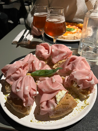 Ho conosciuto questa pizzeria attraverso alcuni amici che mi ci hanno portato in diverse occasioni insieme ad altri amici, cosi da poter prendere diverse pizze e condividerle tra tutti. Penso di esserci venuto un 3 volte, e spero di tornarci altre volte, perché oltre alla qualità molto alta degli ingredienti e delle pizze che sono tutte spettacolari, anche il servizio, oltre ad essere veloce, è molto professionale e cordiale, molto simpatici tutti i camerieri. Purtroppo non ho le foto di tutte le pizze ma comunque ricordo di aver preso: -Tra Valli e delizie: San Marzano, Anguilla di valle, Chips di mais Rostrato fondo Ca’ de Bartoli, Salicornia in carpione, emulsione di Acciughe, Pecorino e Alloro -Gambero Rosa: Stracciatella d'Alpeggio Amò, Gambero rosa in crudità con salsa verde di Prezzemolo , Pepe Timut del Nepal -All’infinito la Terra:Nuvola con impasto multicereali, purea di Pastinaca, Lumaca bolognese stufata, Burro chiarificato alle Erbe, Trombette dei morti -Mortadella: Mortadella Opera Salumificio Fransceschini, Stracciatella d'Alpeggio Amò, Basilico, Acciuga del Cantabrico -Fassona: Burrata affumicata, Tartare di Fassona, Cucunci, sale di Pirano, Sumac -Galloni: Stracciatella, prosciutto Galloni oltre 24 mesi riserva(5 spilli espresso) basilico -Anguilla e verza: Anguilla,verza saltata aop,uva sultanina e pinoli,burrata affumicato di Agerola -Tataki di Tonno: Tropea all’agro, tataki di tonno, stracciatella, prezzemolo