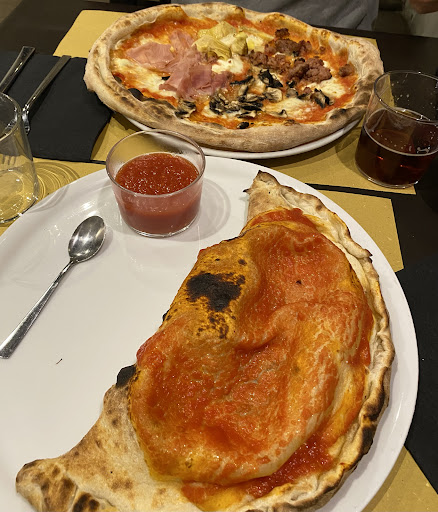 Read moreRecensisco questo locale per quanto riguarda le pizze. Mi trovo completamente in disaccordo con le molte recensioni che lamentano un po' di "freddezza" da parte dei camerieri: con me e la mia ragazza sono stati gentili e super disponibili. Sabato sera (con i buskers) era tutto ovviamente pieno, ma bastava aver prenotato per potersi godere la serata in tranquillità. La pizza è davvero buona, un po' in stile napoletano, quindi un pochetto più grossa, proprio come piace a noi, che la cercavamo così. Abbiamo speso 26€ per due pizze (9€ ciascuna), acqua (1.50€), birra piccola (2.50€) e due coperti (2€ ciascuno); il prezzo può sembrare altino, perché altrove si spenderebbe sui 20-21€. Tuttavia "altrove", probabilmente non sareste in una pizzeria super in centro, a 200m da piazza Trento e Trieste, quindi a nostro parere il prezzo è stato più che giustificato; comunque la bontà delle pizze ha pienamente sopperito al prezzo, infatti le stelle del mio giudizio rimangono 5. Abbiamo mangiato fuori, dove sono disponibili dei graziosi tavolini su via degli Adelardi. Insomma, in conclusione vi consiglio pienamente di provare le pizze...