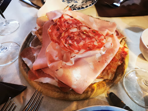 Read moreIn una piazza centrale di Ferrara , a poca distanza dal Castello Estense, il locale di circa 30 coperti è di forma rettangolare , sul lato lungo di sinistra entrando figura un bancone e di seguìto una credenza classica con vetrina, di fronte alla credenza tavoli e sedie di colore noce scuro, predominante in tutto il locale, soffitto con travi dello stesso colore e illuminazione bassa con sottofondo di musica jazz( perlomeno il giorno della mia visita). Tra gli antipasti, tra 14 e 16€, oltre a salumi locali vari tra cui la “ Zia ferrarese “ scottata e servita con mela Fuji e glassa di aceto balsamico superbamente agrodolce, anche un baccalà alla vicentina con polenta e una battuta di carne fassona con tuorlo di quaglia e maionese. Un particolare merito , tra i primi (anche tra i 14 e 16€), va attribuito ai cappellacci di zucca violina ferrarese, la più dolce delle zucche , che magnificamente si sposa con la pasta dei cappellacci in un insieme piacevolmente denso. Oltre ai cappellacci figurano altresì strozzapreti sempre con zucca violina, gnocchetti con melanzane, pomodorini e ricotta salata oltre a spaghetti alla chitarra con gamberi lime e semi di zucca. I secondi annoverano oltre a controfiletto di Scottona e costine di maialino, gamberoni alla piastra e un particolare “ misto dell’orto con polenta grigliata e fonduta di formaggio “. Opportunamente la fonduta e la polenta compensano l’amarognolo delle verdure che sono servite leggermente scottate. I prezzi dei secondi oscillano tra i 18€ del misto di verdure e i 23€ della Scottona e dei Gamberoni. Dolci a sorpresa (tutti a 7 € ). Lista dei vini non particolarmente varia ma prezzi giusti....