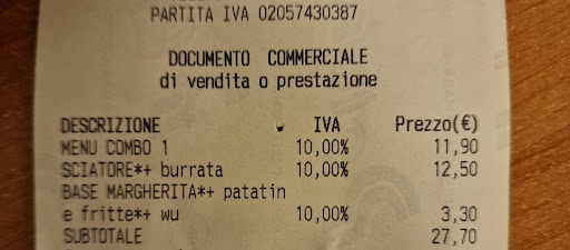 Sciatore + Burrata: 12,50€ (burrata non ricevuta)