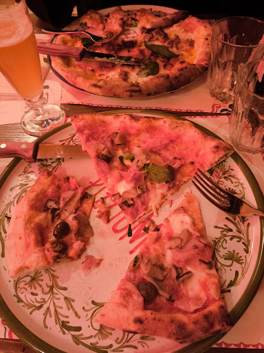 Read moreLa pizza i n d u s t r i a l e questa è la formula, la bufalina, il pomodoro era così pallido da essere rosa, era assolutamente i n s a p o r e, non sapeva di niente il pomodoro, non sapeva niente la mozzarella di bufala (?????), non sapeva di niente nemmeno il basilico, la pasta ... forse veniva dalla Montecatini, gommosa come una chicles, alta ai bordi che pareva un salvagente; questo è un impianto industriale, l'unità produttiva di un gruppo, e quindi la qualità della pizza è irrilevante, perchè questa è la stessa pizza che mangiano a Copenaghen, Helsinki, Parigi, Stoccolma, Parigi, Londra, Madrid, Tokio, Hong Kong, New York, ed è quindi una pizza standardizzata che deve andare bene in tutto il mondo; pazzesco: la nostra pizza, il cibo italiano per eccellenza, ridotta a un cencio senza più alcuna genuinità, frodata di qualsiasi qualità, originalità ... e come piace ai clienti ... per l'80% giovani di età