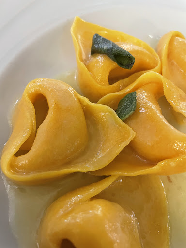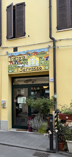 Read moreLa bella Ferrara, un tesoro italiano: arte, cultura e buona cucina. Metti una mattina di pioggia, preferisci non prendere la bicicletta - che tanto avresti voluto pedalare - decidi di fare due passi e ad un tratto, in un angolo grazioso e tipico, ti accorgi di sbirciare attraverso i vetri della Trattoria "Il Sorpasso". Che sorpresa ragazzi! Tanto colore e tanta gioia soprattutto dopo aver gustato le fantastiche pietanze che lo Chef propone personalmente al tavolo. Abbiamo apprezzato le "ferraresità": piatti tipici di Ferrara. Una salamina così decisa che sembra ti parli, la cipolla che Porca Miseria! - è il titolo del piatto;) - è un susseguirsi di sapori sorprendenti. Poi la delizia dei nostri palati è stata ipnotizzata dai cappellacci di zucca conditi con un ragù sublime. Poiché avevamo voglia di contrastarci, abbiamo ricevuto la massima espressione del gusto ferrarese che potete trovare nel ristorante: la dolcezza del pasticcio in crosta dolce con il ripieno di maccheroncini! Che straordinaria bontà, caposaldo del contrasto e della goduria allo stesso tempo. Non contenti di quanto fino a quel momento graziosamente ricevuto, ci siamo regalati una faraona e zucca da urlo e un piatto di melanzane cucinate in cinque modi differenti. Cinque come le stelle che merita Il Sorpasso: servizio ottimo, arredamento curato, particolare e colorato. Un plauso a tutto lo staff. Il vino "salino" che ci è stato consigliato ha accompagnato tutte le pietanze con gran sapienza. Infine i dolcetti tipici ferraresi e un buon caffè, fatto con la moka. P.S. Sotto alle mattonelle del bellissimo tavolo "con sorpresa" c'è anche il nostro biglietto con un pensiero per...