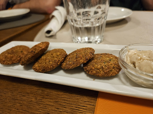 Read moreAbbiamo scelto questo locale in quanto molto conosciuto dai nostri amici e grazie anche alle sue alternative vegane, per chi avesse necessità. Come antipasto abbiamo preso "coccoli" (bonbon di pasta pizza fritti) con ben 4 salse diverse (davvero squisite) ed anche dei falafel, vino ed acqua le bevande. Qualcuno ha preso il primo, di cui gnocchi di patate con crema di carciofi alla menta e crumble di pane al limone, e spaghetti con acciughe, capperi e stracciatella, mentre come secondi abbiamo optato per tagliata di pollo (ho sostituito l'insalatina con le verdure grigliate), tagliata di manzo con patate ed Scacciaburger. Ho scordato di fare le foto ai dolci (e non ricordo bene le varie scelte) ma posso assicurare fossero davvero buoni nonostante la delicatezza di alcuni sapori: una sorta di mousse di riso con vari "topping", tra cui amarene e zenzero. Caffè finale e pagamento alla romana, circa 23 euro a testa per 8 persone. La signora che ci ha serviti è stata simpatica ma senza mai risultare eccessiva, davvero gentile e disponibile se veniva chiesta una variazione o qualche info. Prezzi tutto sommato molto buoni ed alla portata di tutti, apprezzabilissima la varietà di piatti per chi appunto segue un'alimentazione distinta. Il locale è stato arredato in modo semplice, direi in stile "tipica trattoria italiana". Nel mio gusto personale, aggiungerei più personalità al luogo, per rendere giustizia alla qualità della cucina, ma tutto sommato "ci sta" anche così, modesto e senza sfarzo che spesso è di troppo. Indubbiamente si tornerà per un altro buon pasto in compagnia (e per quei coccoli...