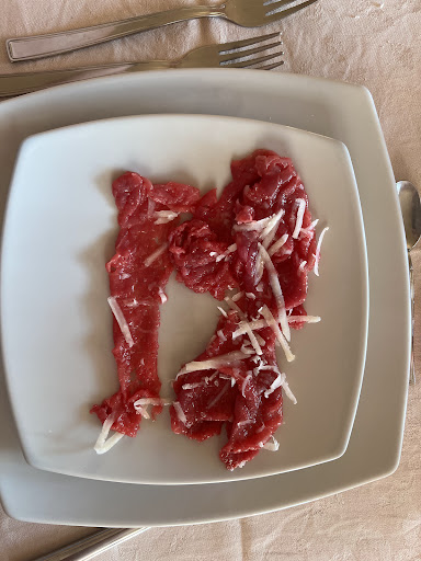 È un 3 stelle la parte alloggi o stanze che non ho visto, noi abbiamo solo cenato e sembrava di stare a casa con amici per i titolari gentili cortesi ed informali, nonostante la massima educazione e gentilezza con tutti gli avventori, messi perfettamente a loro agio. Cibo buono, materia prima a km 0, eccelente, la qualità è trattata con i "guanti gialli"...come mangiare a casa, o a volte meglio, soprattutto la carne anche cruda che era eccellente. Qualche nota dolente ad esempio per un menù fisso con poca scelta (antipasti e secondi quasi tutta carne), 1 solo primo ed una composizione molto completa, forse troppo, con antipasti e contorni simili se non uguali: 4 antipasti, 1 primo, 1 secondo a scelta, contorno, pane coperto dolce e caffè a 33€ che è ottimo. Se qualche commensale è vegetariano entrano in difficoltà e ci si sente un attimo in imbarazzo, perché colti un po' alla sprovvista, ma rimediano subito, anche se alla buona. Chiesto esplicitamente, sia all'ordine che più volte durante il pasto, di avere l'insalata insieme al secondo, son riusciti a portarla per ultima a pasto finito e fame esaurita... Prendendo 1/3 del menù, entrambi, il conto diventa sproporzionato per la poca quantità rispetto il totale. Qualità indiscutibile Hanno le potenzialità per migliorare, margine pure...sarebbe...