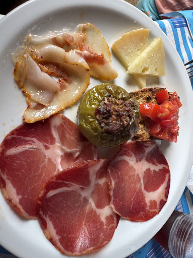 Location carina, curata. Posizione fantastica, con terrazza con vista su uno slendido mare. Servizio e cucina, completamente da rivedere, basta pensare che si sono scordati di servire il nostro tavolo e non solo.... premetto che a mangiare eravamo 3 adulti e 3 bambini (sotto i 5 anni), abbiamo iniziato il pranzo alle 13.00 ed è finito alle 15.15, il tutto è inaccettabile visto che si mangiava con menù fisso che era composto da antipasto, primo e secondo con un mini contorno. Dopo 15 min che eravamo seduti abbiamo dovuto richiedere l'acqua, siccome ancora non si era visto un cameriere. Le portate le abbiamo dovute chiamare ed invece di portarci ciò che abbiamo ordinato ci stavano portando tutt'altro. La qualità del cibo e le porzioni erano abbastanza scarse. I 20 euro spesi a persona, in questo modo diventano veramente troppi. Un posto dove non tornerei assolutamente a mangiare, anche se hanno cercato di recuperare alla serie di errori commessi togliendo le paste dei bimbi. Questo paesaggio...