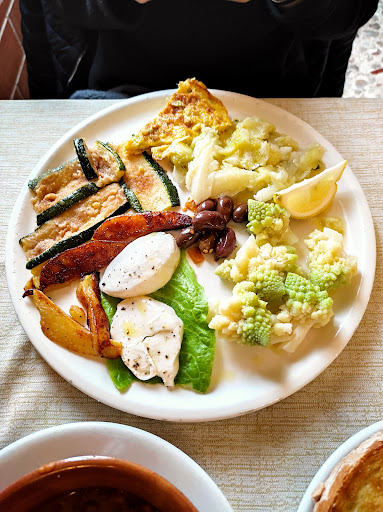 Read moreAbbiamo scoperto quest'osteria per puro caso ed è stata un'esperienza assolutamente positiva. Molti di questi locali in giro per l'Italia si definiscono "Osterie" per ritrovarti poi in pseudo-ristoranti con piatti dall'apparenza sofisticata e dal prezzo esagerato. Questa invece è una vera osteria, con gestione veramente familiare, dove si mangiano dei buoni piatti casarecci. Il proprietario, che abbiamo avuto modo di conoscere grazie ad una lunga chiacchierata, è simpaticissimo e disponibilissimo. Il servizio è stato velocissimo e considerando che il locale era pieno e che è lo stesso proprietario da solo a gestire tutta la sala, oltre a fare i complimenti non serve aggiungere altro. Gli antipasti, in particolare quelli a base di ortaggi, prodotti direttamente da lui, sono stati molto apprezzati, normale invece l'antipasto a base di salumi. Costolette di maiale alla brace fantastiche. Prezzi super onesti ! Visto che torneremo per assaggiare altro, riservo la 5 stella per la Carbonara della...