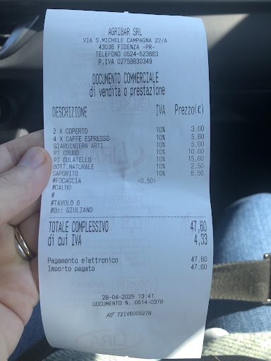 Read moreLocated 100 mt from the A1 exit Fidenza near Fidenza Village Agri Bar is a great place for breakfast, Brunch, Lunch and afternoon snacks and aperitivi. Impeccably clean with a super fresh choice of pastry, sandwiches, piadina, pasta and Salads including daily changes in their lunch menu. Top quality ingredients and their smiling helpful staff makes your visit even more pleasant. By the way, they also sell tobacco They also...