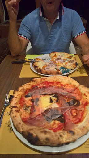 Read moreAvevamo prenotato, ma una volta entrati abbiamo atteso diversi minuti prima di essere accolti sebbene intralciavamo l'accesso al locale e il tavolo fosse pronto (non era tutto esaurito). Abbiamo calcolato la presenza di una settantina di clienti ai tavoli, ma nonostante nel locale si possano ordinare solo proposte di pizzeria abbiamo atteso oltre un'ora le nostre portate. Le ordinazioni vengono annotate con carta e penna e dopo decine di minuti sono tornate prima una cameriera e poi un'altra a chiedere di scegliere alternative perché le specialità richieste erano esaurite (addirittura di una non era più disponibile l'impasto). I clienti del tavolo a fianco, arrivati dopo, sono stati serviti prima e per quanto mi riguarda la mia portata mi è stata servita per ultima quanto tutti gli altri stavano terminando. Portate esagerate che in diversi non hanno finito: le preparazioni uscivano dai piatti, ma tutti eravamo d'accordo che avremmo preferito spendere meno e non lasciare la roba. Fra l'altro proprio niente di speciale: nel mio piatto sicuramente non si riconoscevano tutti gli ingredienti dichiarati. Abbiamo chiesto il conto al tavolo, ma poiché non ci veniva portato ci siamo alzati e siamo andati noi alla cassa. Rientrando a casa, prima di andare a letto, abbiamo messo a lavare gli indumenti puliti che avevamo indossato prima di andare nel locale e ci siamo pure lavati i capelli oltre a rifare la doccia: impossibile uscire di lì non impregnati di...